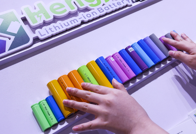 参展商在第135届广交会新能源展区布置锂电池展品(2024年4月15日摄)。