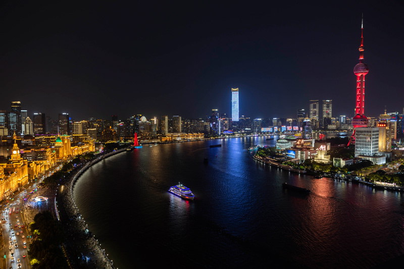 上海陆家嘴、外滩、北外滩夜景(2025年4月30日摄)。