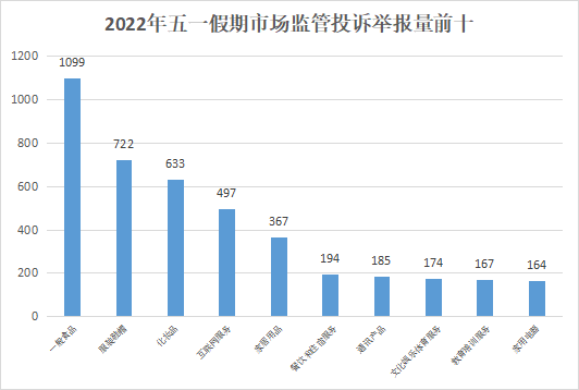 从涉及热点领域上看,主要集中在一般食品1099件、服装鞋帽722件、化妆品633件、互联网服务497件、家居用品367件、餐饮和住宿服务194件、通讯产品185件、文化娱乐体育服务174件、教育培训服务167件、家用电器164件等。